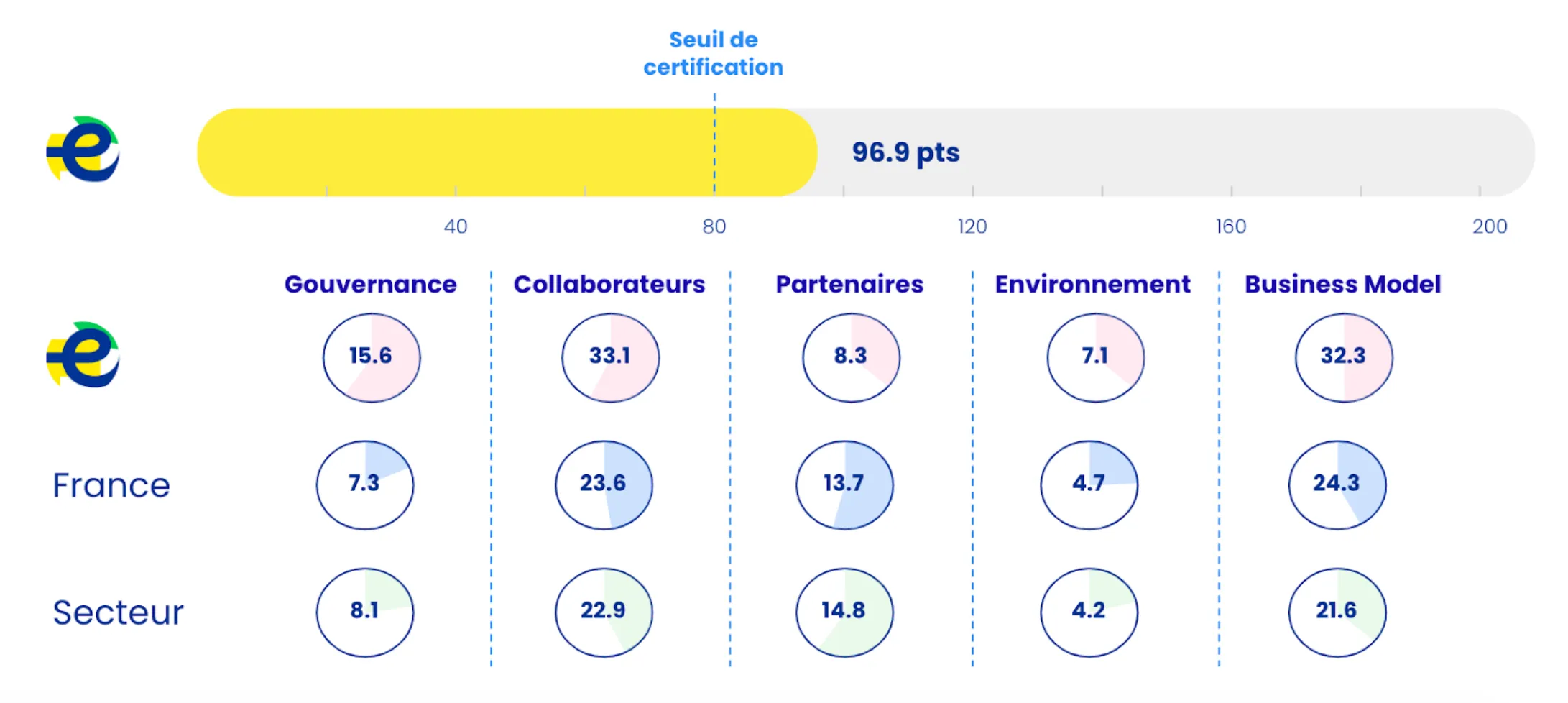 Notre score B Corp de 96,9 se décompose de la manière suivante :