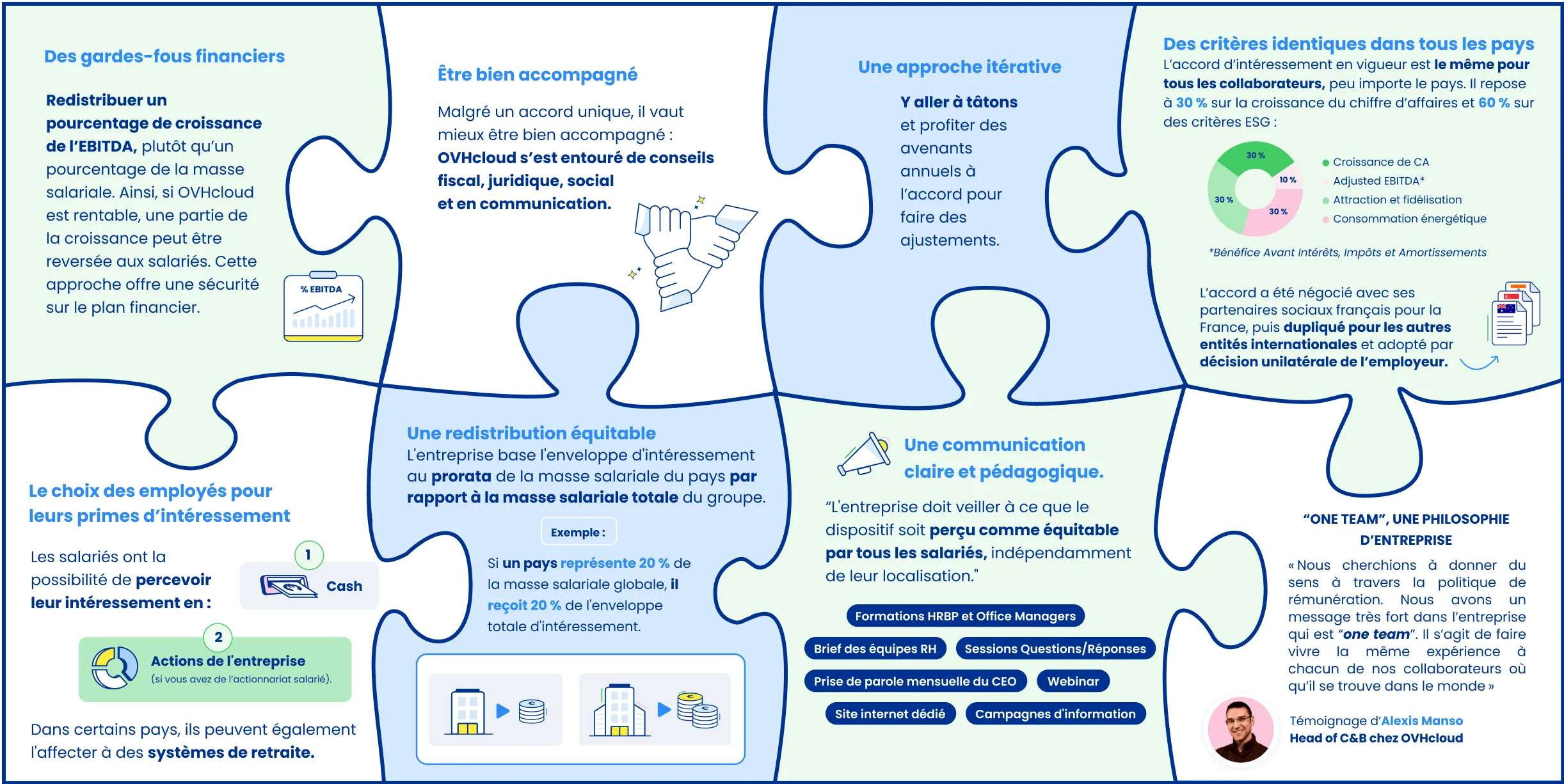 Chez OVHcloud la mise en place d’un accord d’intéressement « monde » a été rendue possible grâce à « un DG en sponsor, une RH favorable et un directeur financier qui voyait l’intérêt d’aligner toutes les équipes (...) »