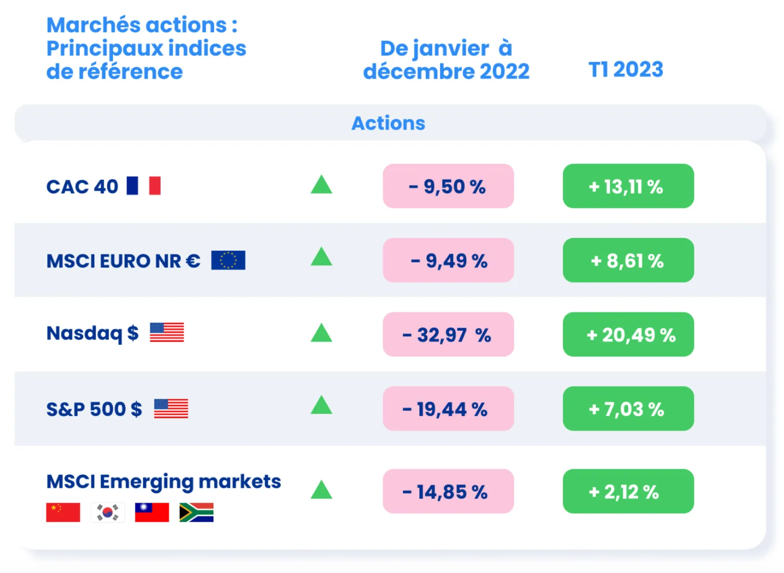 Les actions ont très bien performé au premier trimestre 2023.